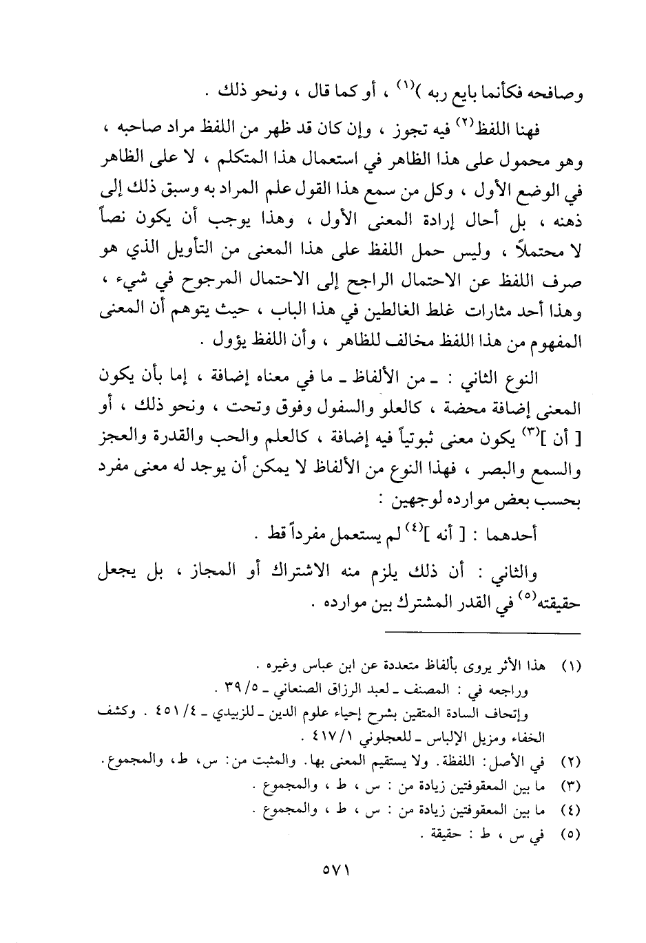 النوع الثاني: -من الألفاظ- ما في معناه إضافة، إما بأن يكون المعنى إضافة محضة، كالعلو والسفول وفوق وتحت، ونحو ذلك، أو [أن] (¬3) يكون معنى ثبوتيًّا فيه إضافة، كالعلم والحب والقدرة والعجز والسمع والبصر، فإذا النوع من الألفاظ لا يمكن أن يوجد له معنى مفرد بحسب بعض موارده لوجهين: