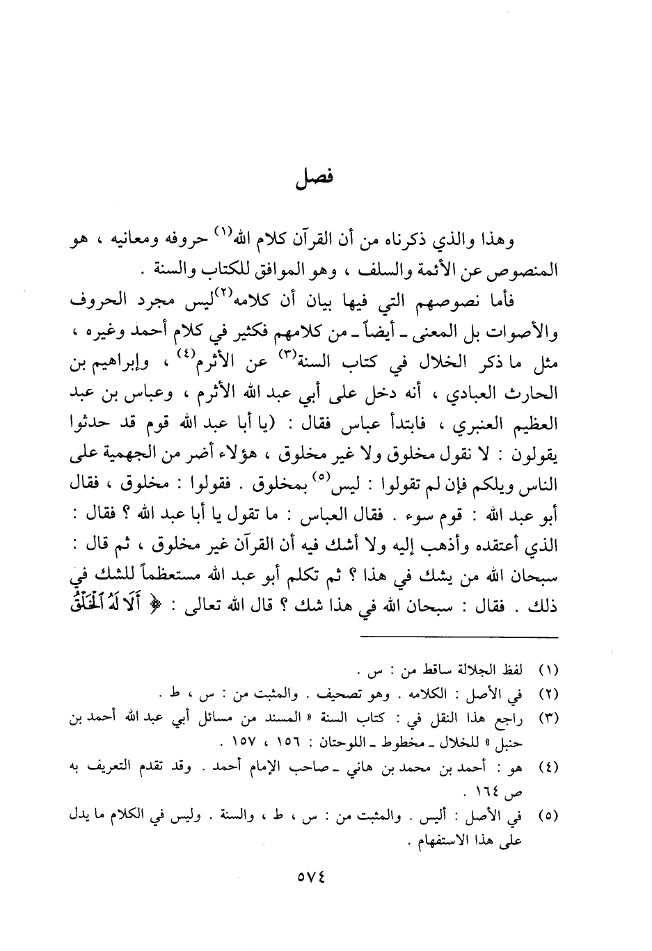 (¬3) راجع هذا النقل في: كتاب السنة "المسند من مسائل أبي عبد الله أحمد بن حنبل" للخلال -مخطوط- اللوحتان: 156، 157.