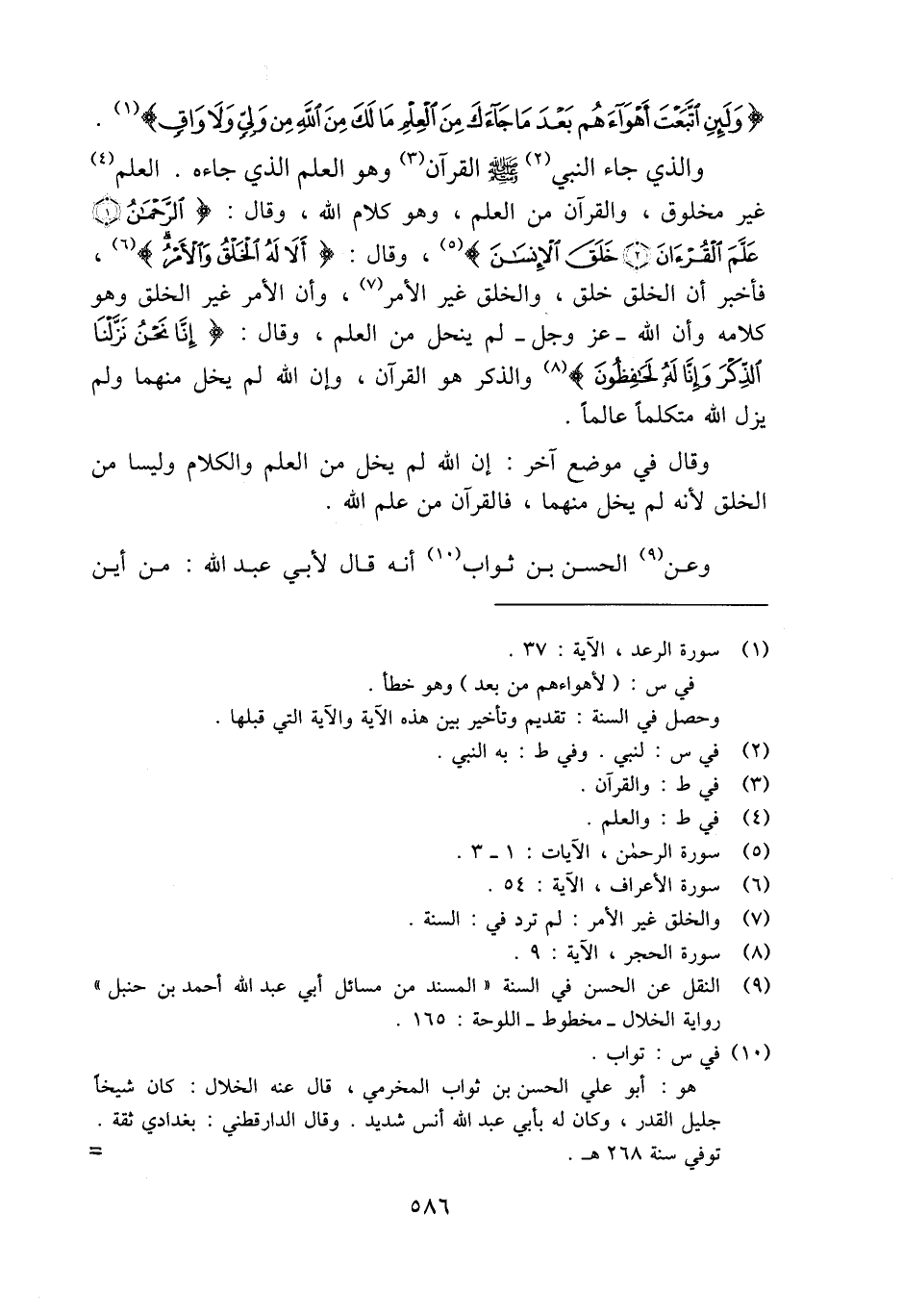 (¬9) النقل عن الحسن في السنة "المسند من مسائل أبي عبد الله أحمد بن حنبل" رواية الخلال -مخطوط- اللوحة: 165.
