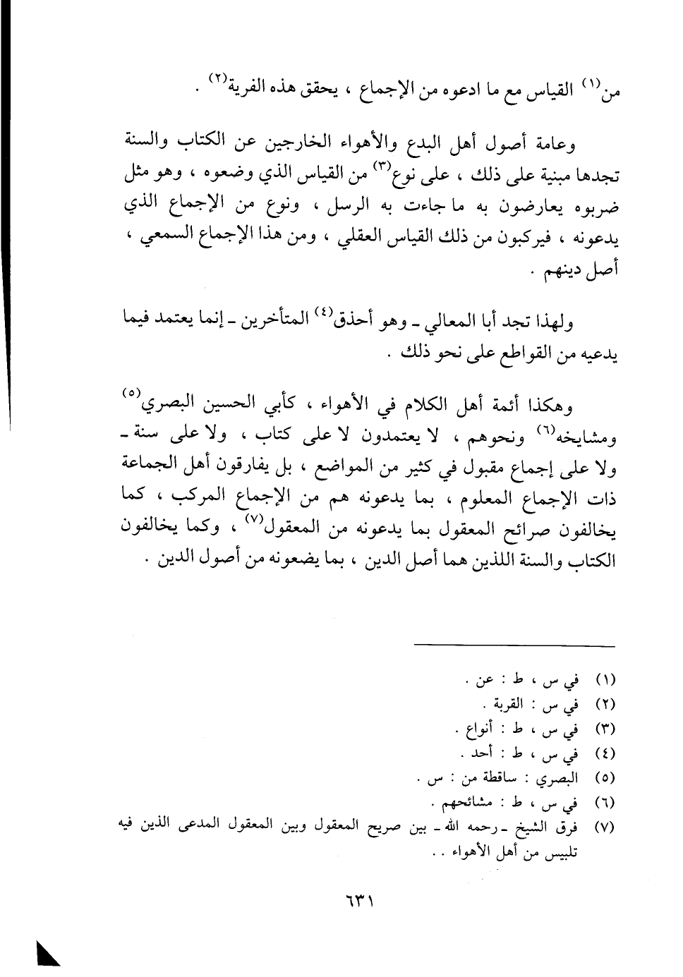 ولهذا تجد أبا المعالي -وهو أحذق (¬4) المتأخرين- إنَّما يعتمد فيما يدعيه من القواطع على نحو ذلك.