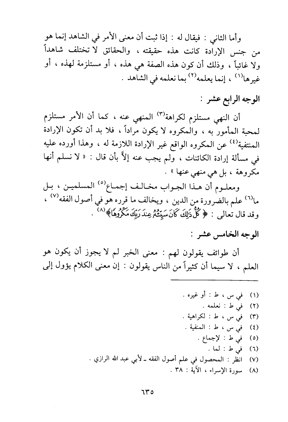 (¬7) انظر: المحصول في علم أصول الفقه -لأبي عبد الله الرازي.