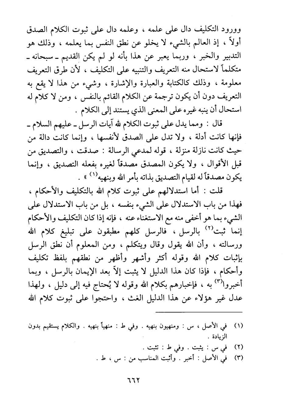 قلت: أما استدلالهم على ثبوت كلام الله بالتكليف والأحكام، فهذا من باب الاستدلال على الشيء بنفسه، بل من باب الاستدلال على الشيء بما هو أخفى منه مع الاستغناء عنه، فإنه إذا كان التكليف والأحكام إنما ثبت (¬2) بالرسل، فالرسل كلهم مطبقون على تبليغ كلام الله ورسالته، وأن الله يقول وقال ويتكلم، ومن المعلوم أن نطق الرسل بإثبات كلام الله وقوله أكثر وأشهر وأظهر من نطقهم بلفظ تكليف وأحكام، فإذا كان هذا الدليل لا يثبت إلَّا بعد الإيمان بالرسل، وبما أخبروا (¬3) به، فإخبارهم بكلام الله وقوله لا يُحتاج فيه إلى دليل، ولهذا عدل غير هؤلاء عن هذا الدليل الغث، واحتجوا على ثبوت كلام الله