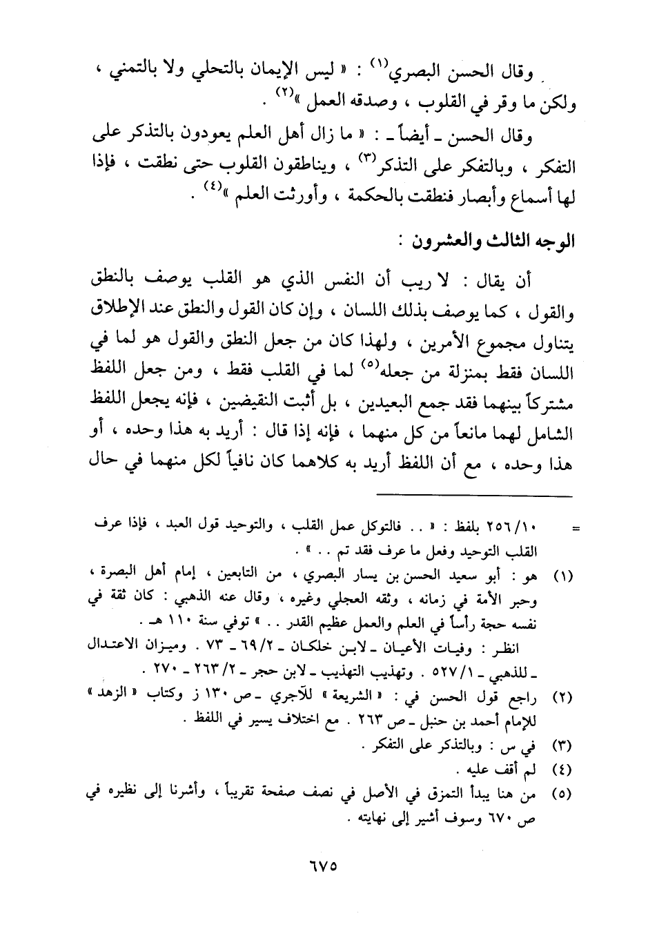 (¬1) هو: أبو سعيد الحسن بن يسار البصري، من التابعين، إمام أهل البصرة، وحبر الأمة في زمانه، وثقه العجلي وغيره، وقال عنه الذهبي: كان ثقة في نفسه حجة رأسًا في العلم والعمل عظيم القدر. . " توفي سنة 110 هـ.