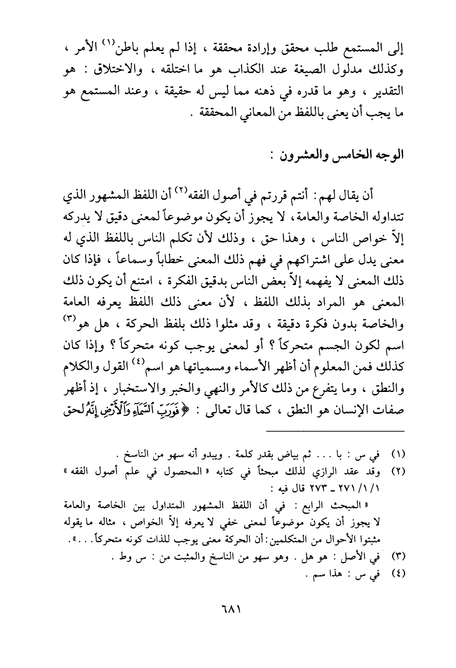 (¬2) وقد عقد الرازي لذلك مبحثًا في كتابه "المحصول في علم أصول الفقه" 1/ 1 / 271 - 273 قال فيه: