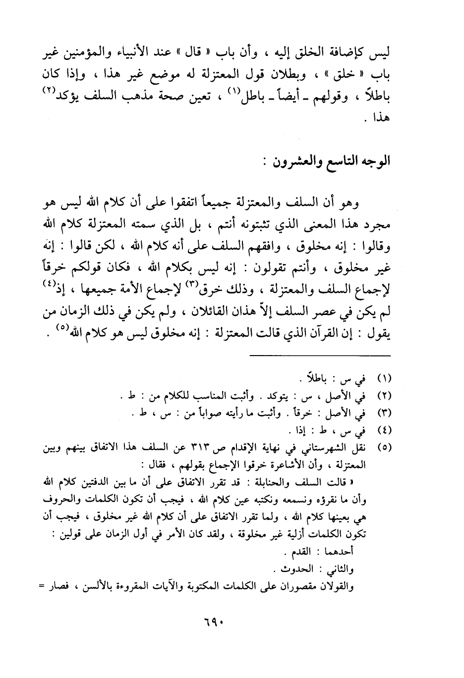 (¬5) نقل الشهرستاني في نهاية الإقدام ص: 313 عن السلف هذا الاتفاق بينهم وبين المعتزلة، وأن الأشاعرة خرقوا الإجماع بقولهم، فقال: