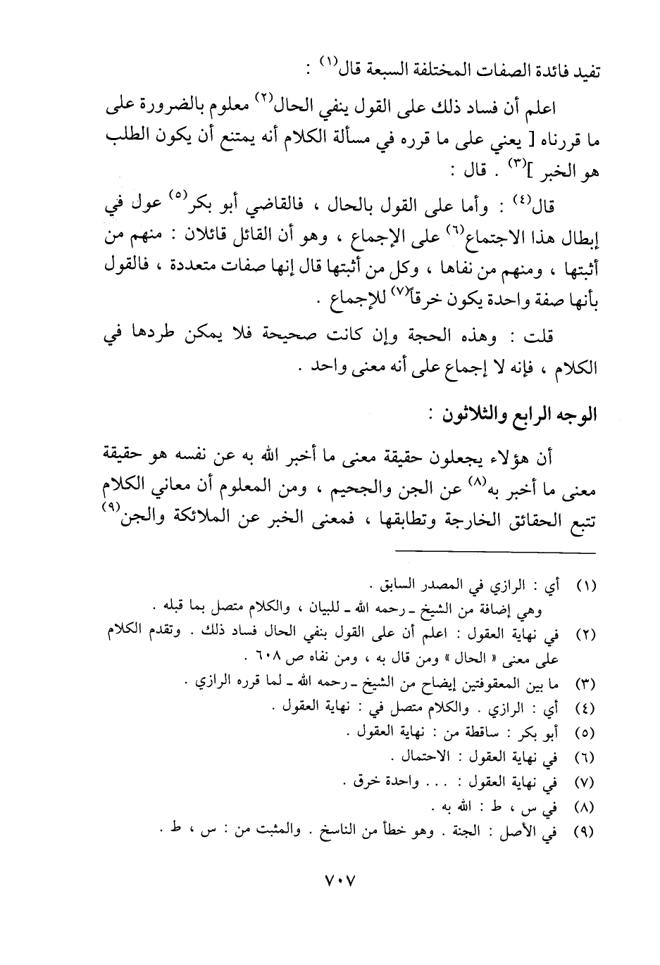(¬2) في نهاية العقول: اعلم أن على القول بنفي الحال فساد ذلك. وتقدم الكلام على معنى "الحال" ومن قال به، ومن نفاه ص: 608.