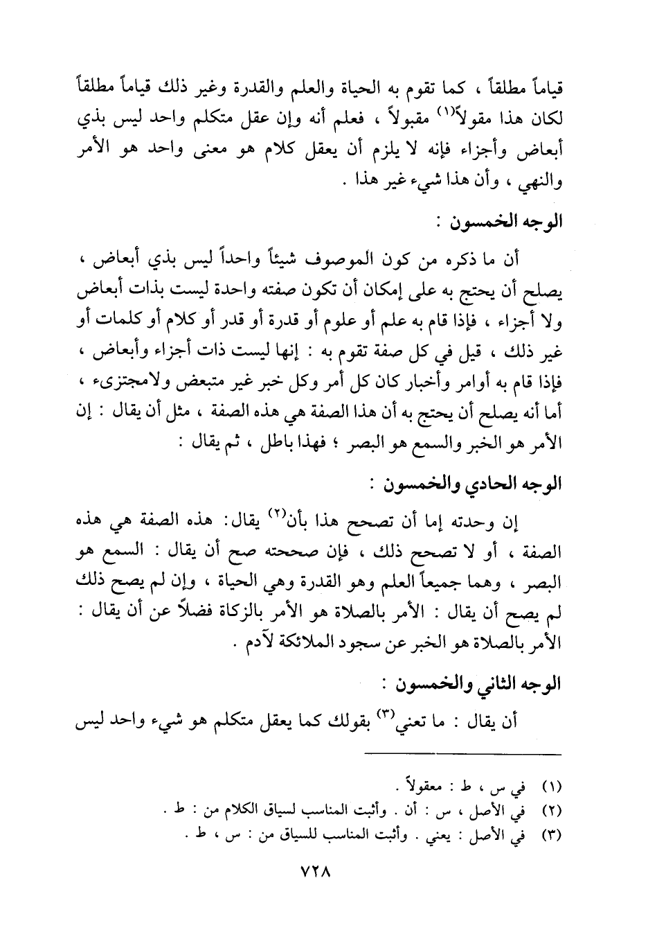 قيامًا مطلقًا، كما تقوم به الحياة والعلم والقدرة وغير ذلك قيامًا مطلقًا لكان هذا مقولًا (¬1) مقبولًا، فعلم أنه وإن عقل متكلم واحد ليس بذي أبعاض وأجزاء فإنه لا يلزم أن يعقل كلام هو معنى واحد هو الأمر والنهي، وأن هذا شيء غير هذا.
