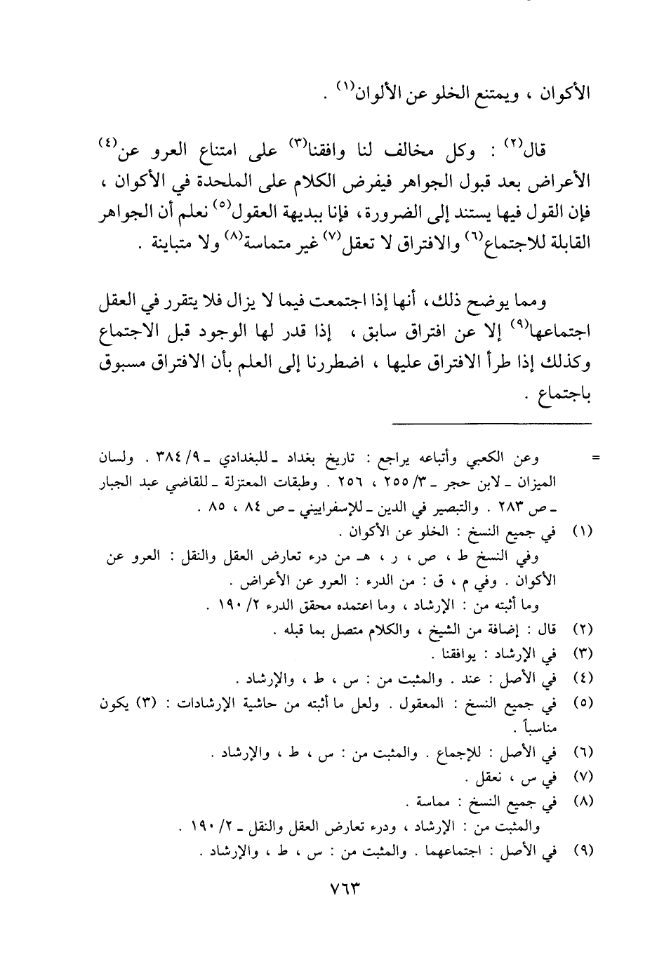 = وعن الكعبي وأتباعه يراجع: تاريخ بغداد -للبغدادي- 9/ 384. ولسان الميزان -لابن حجر- 3/ 255، 256. وطبقات المعتزلة -للقاضي عبد الجبار- ص: 283. والتبصير في الدين -للإسفراييني- ص: 84، 85.