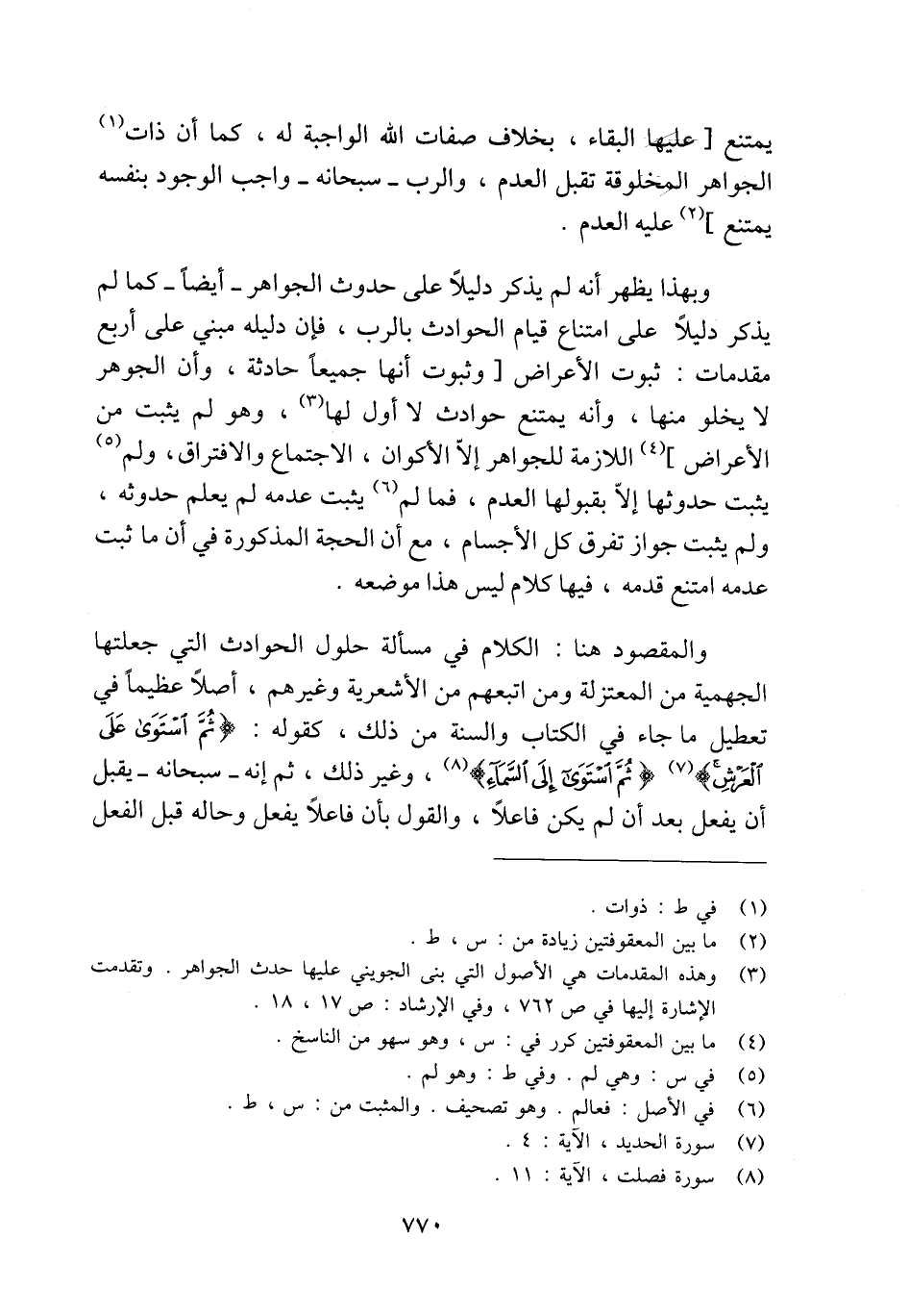 (¬3) وهذه المقدمات هي الأصول التي بنى الجويني عليها حدث الجواهر. وتقدمت الإشارة إليها في ص: 762، وفي الإرشاد: ص: 17، 18.
