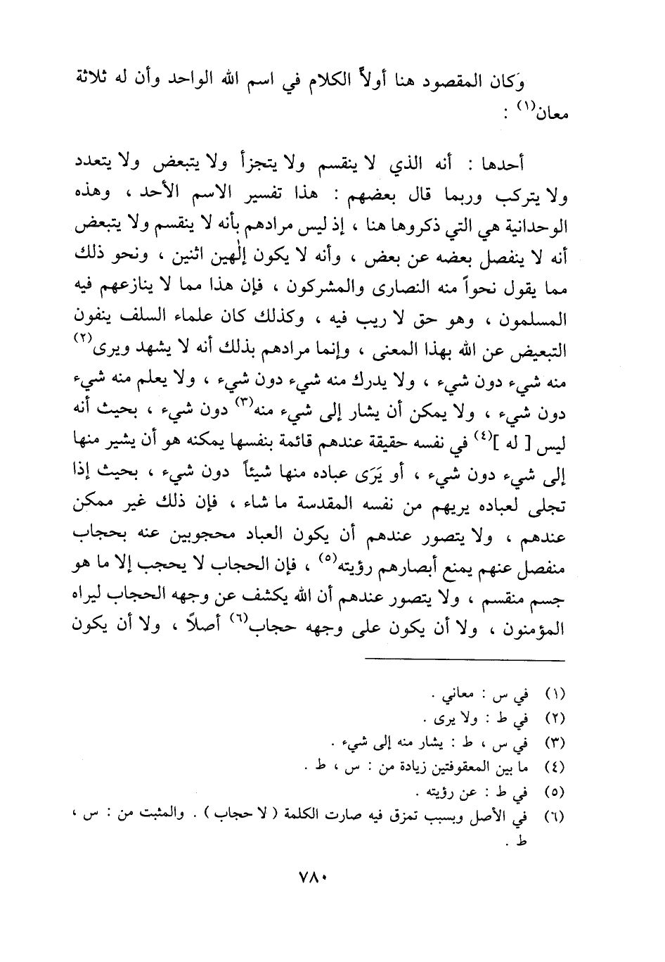 وكان المقصود هنا أولًا الكلام في اسم الله الواحد وأن له ثلاثة معان (¬1):