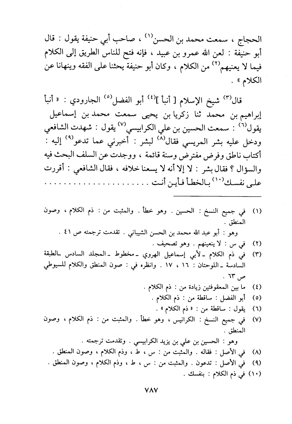 (¬1) في جميع النسخ: الحسين. وهو خطأ. والمثبت من: ذم الكلام، وصون المنطق.