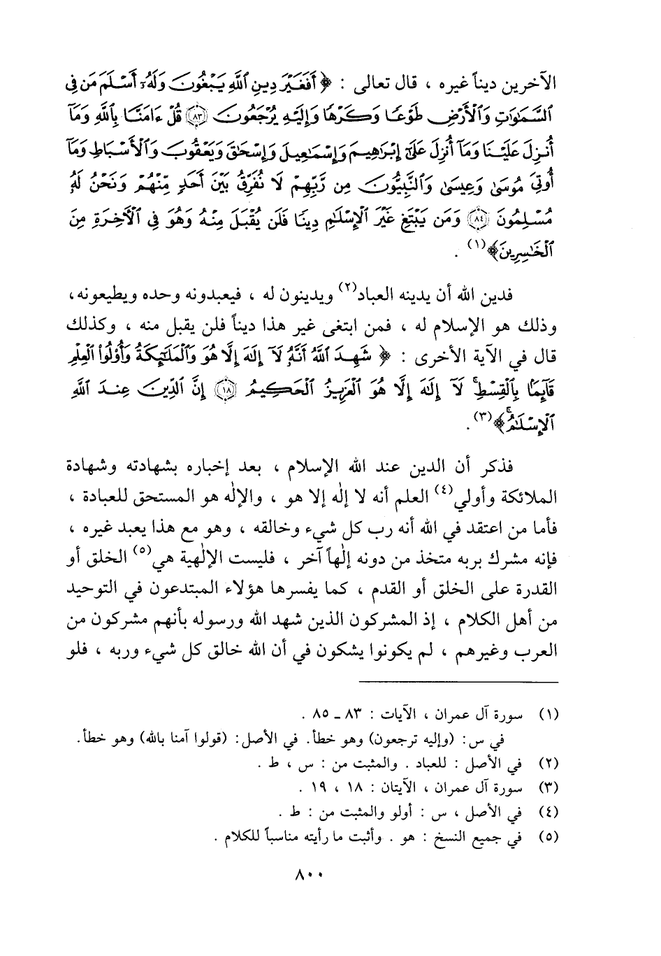 (¬3) سورة آل عمران، الآيتان: 18، 19.