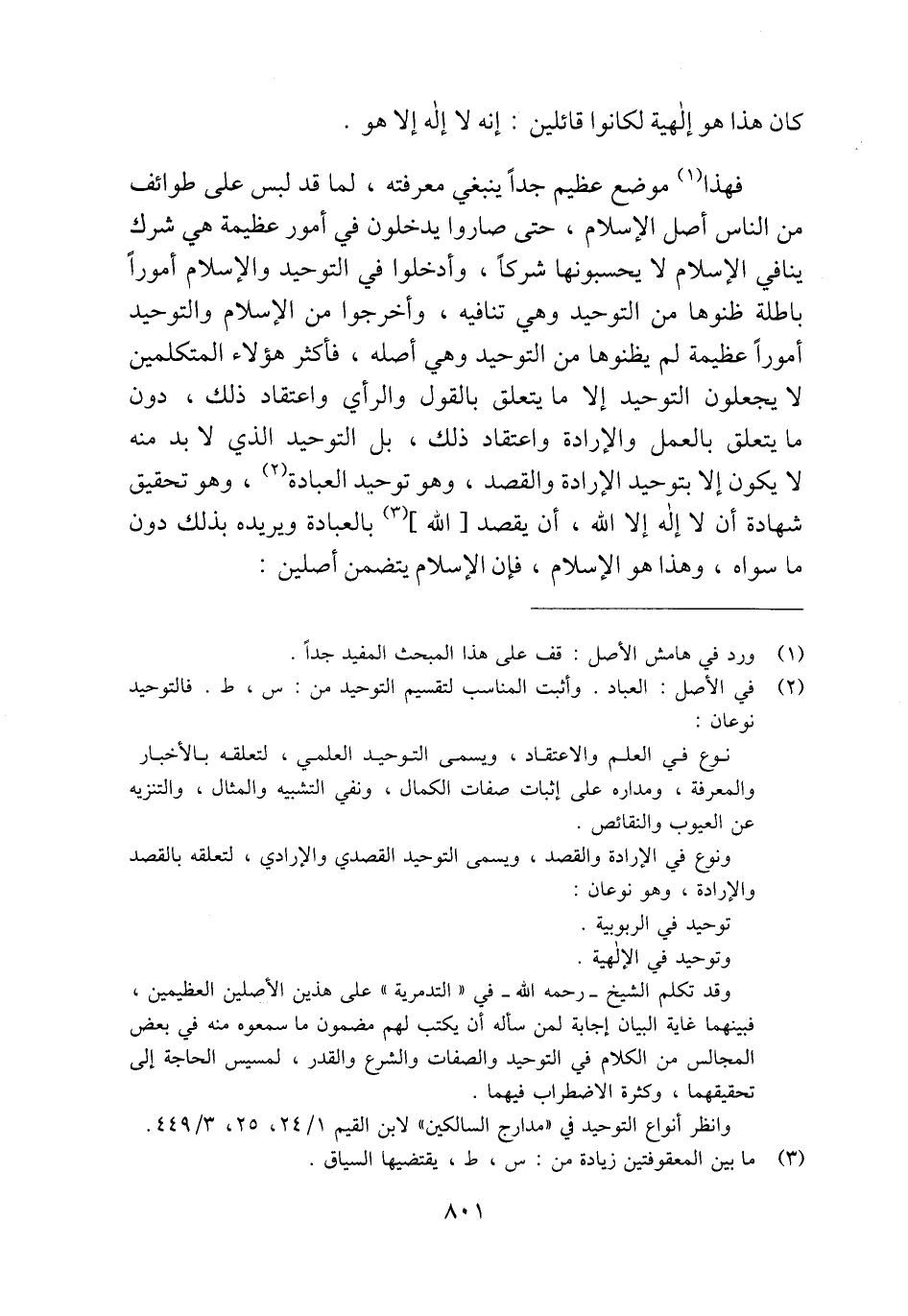 وانظر أنواع التوحيد في "مدارج السالكين" لابن القيم 1/ 24، 25، 3/ 449.