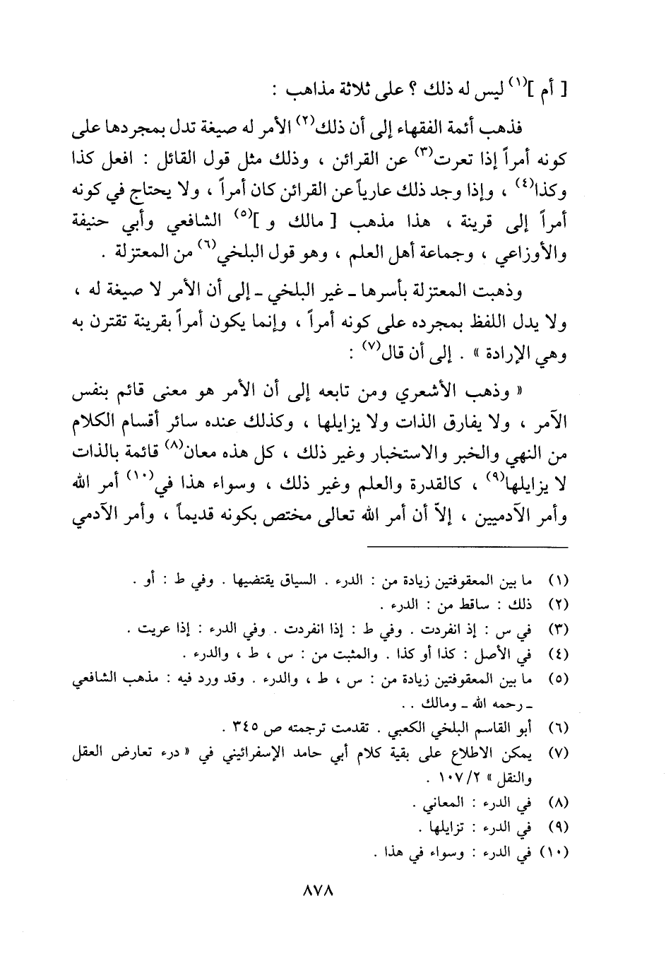 (¬7) يمكن الاطلاع على بقية كلام أبي حامد الإسفرائيني في "درء تعارض العقل والنقل" 2/ 107.