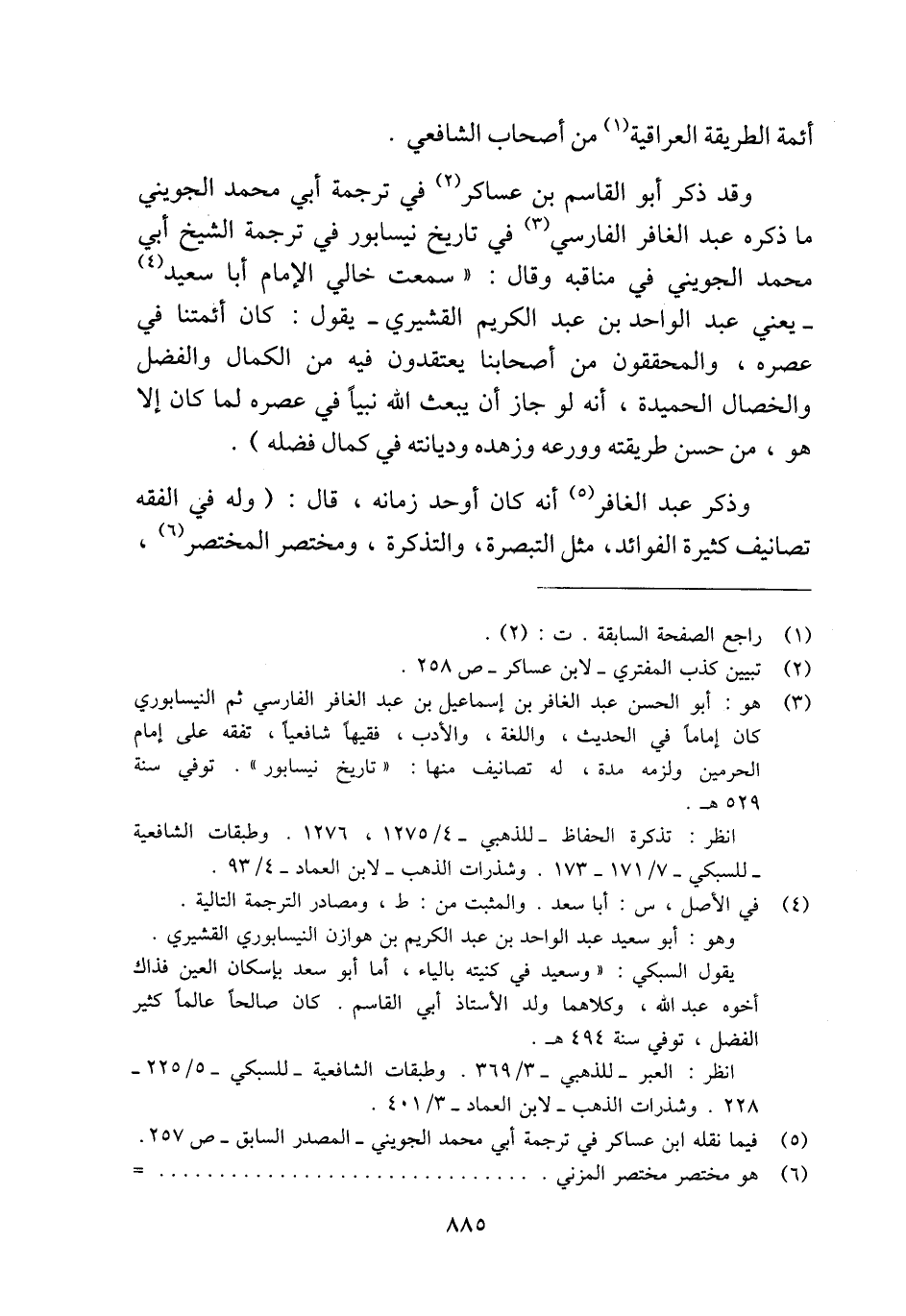 (¬5) فيما نقله ابن عساكر في ترجمة أبي محمد الجويني -المصدر السابق- ص: 257.