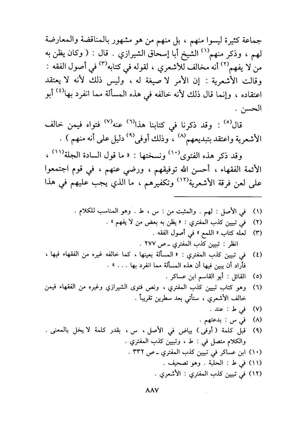 (¬6) وهو كتاب تبيين كذب المفتري، ونص فتوى الشيرازي وغيره من الفقهاء فيمن خالف الأشعري، ستأتي بعد سطرين تقريبًا.