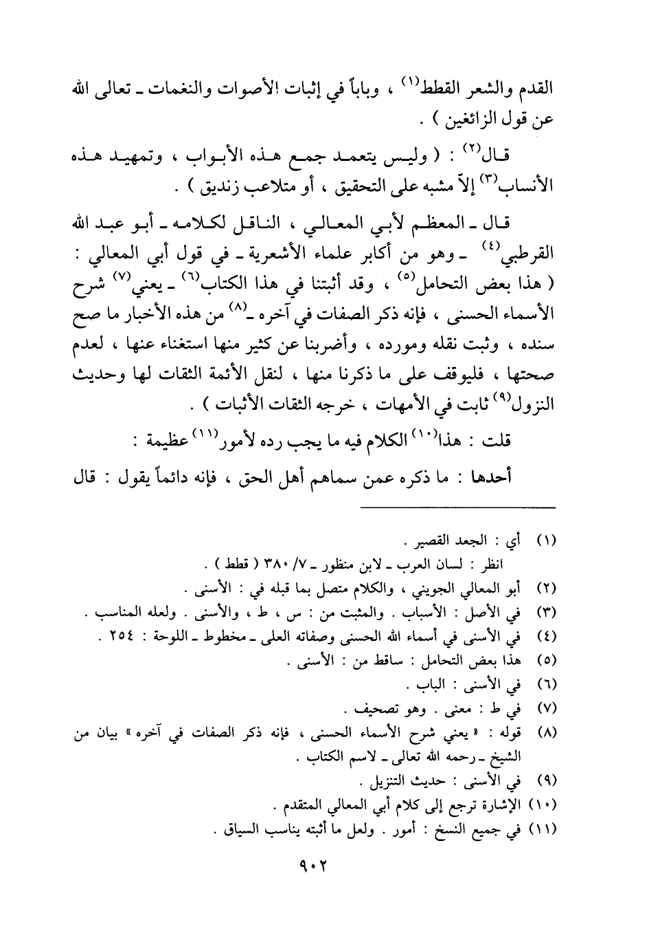 (¬10) الإشارة ترجع إلى كلام أبي المعالي المتقدم.