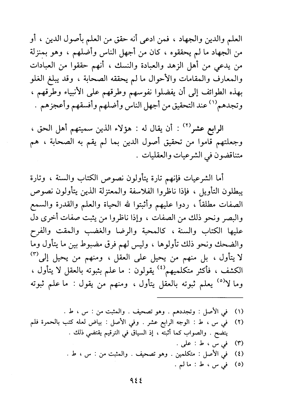 الرابع عشر (¬2): أن يقال له: هؤلاء الذين سميتهم أهل الحق، وجعلتهم قاموا من تحقيق أصول الدين بما لم يقم به الصحابة، هم متناقضون في الشرعيات والعقليات.