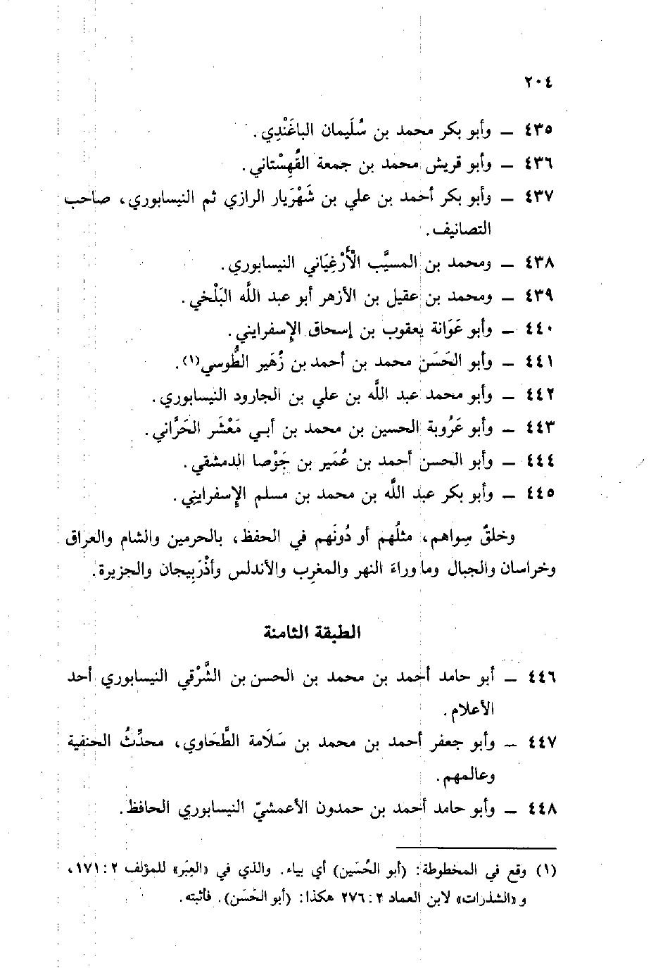 445 - وابو بكر عبد الله بن محمد بن مسلم الاسفرايني وخلق سواهم مثلهم او دونهم في الحفظ بالحرمين والشام والعراق وخرسان والجبال وما وراء النهرين والمغرب والاندلس واذربيجان والجزيرة