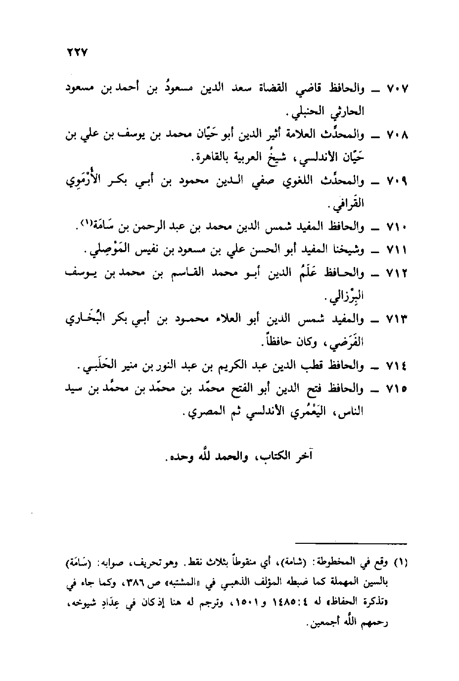 710 - والحافظ المفيد شمس الدين محمد بن عبد الرحمن بن سامة