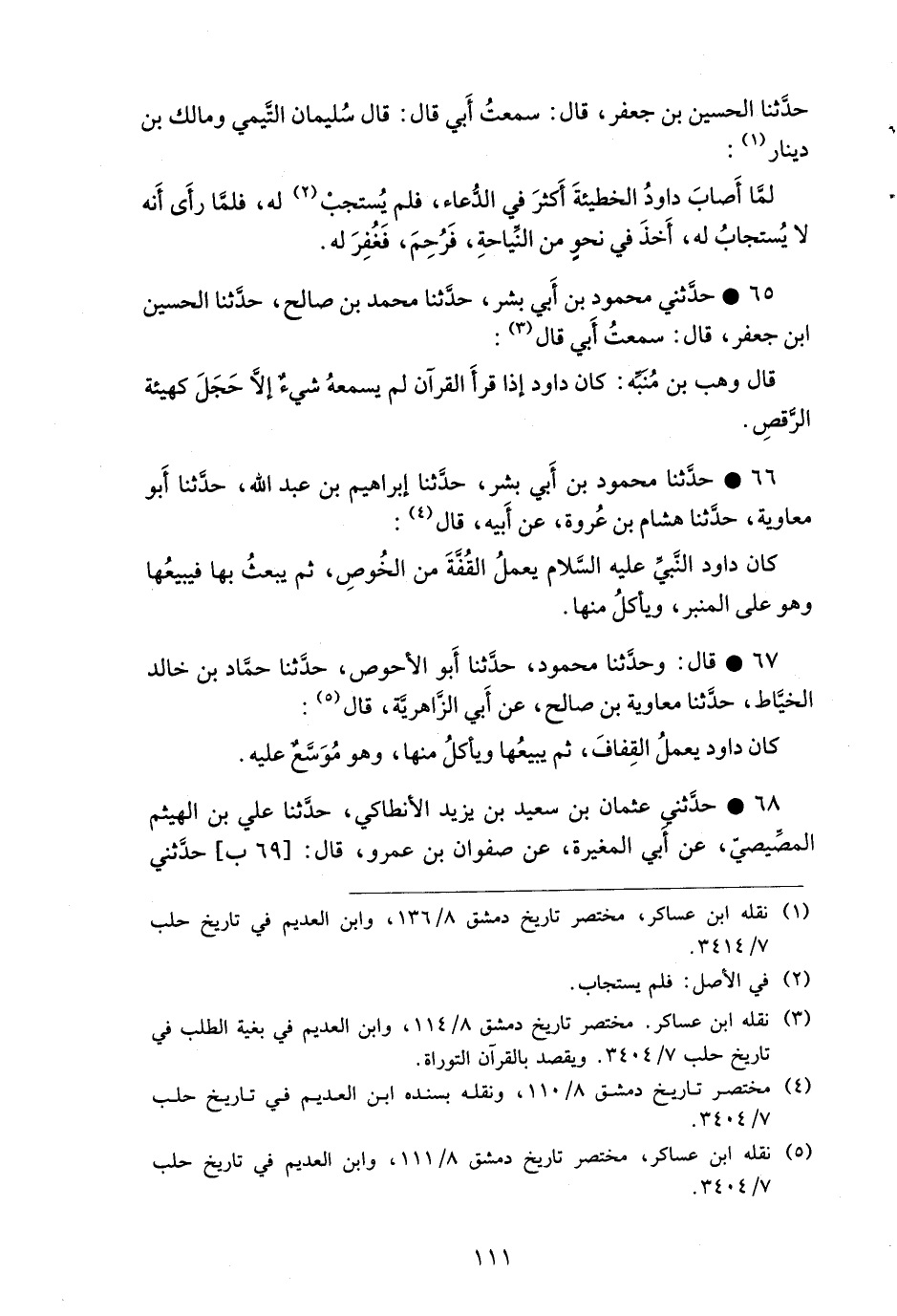 كَانَ دَاوُدُ يَعْمَلُ الْقِفَافَ، ثُمَّ يَبِيعُهَا وَيَأْكُلُ مِنْهَا، وَهُوَ موسعٌ عَلَيْهِ.