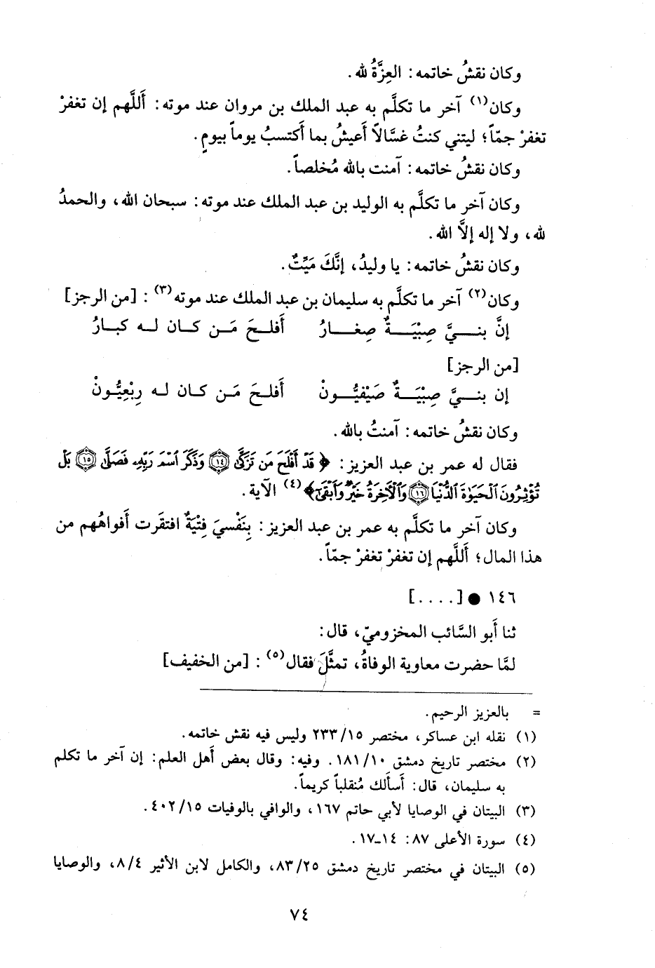 لَمَّا حَضَرَتْ مُعَاوِيَةَ الوفاة، تمثل فقال: