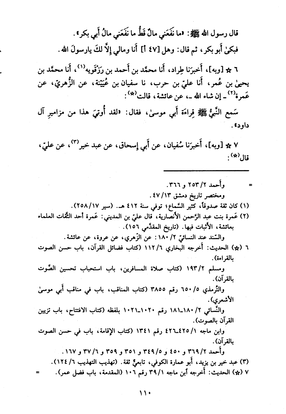 6 - وَبِهِ، أَخْبَرَنَا طِرَادٌ، أَنا مُحَمَّدُ بْنُ أَحْمَدَ بْنِ رِزْقَوَيْهِ، أَنا مُحَمَّدُ بْنُ يَحْيَى بْنِ عُمَرَ، أَنا عَلِيُّ بْنُ حَرْبٍ، نا سُفْيَانُ بْنُ عُيَيْنَةَ، عَنِ الزُّهْرِيِّ، عَنْ عَمْرَةَ إِنْ شَاءَ اللَّهُ، عَنْ عَائِشَةَ، قَالَتْ: سَمِعَ النَّبِيُّ صَلَّى اللَّهُ عَلَيْهِ وَسَلَّمَ قِرَاءَةَ أَبِي مُوسَى، فَقَالَ: § «لَقَدْ أُوتِيَ هَذَا مِنْ مَزَامِيرِ آلِ دَاوُدَ»