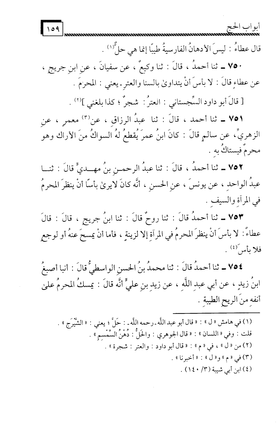 ثَنَا أَحْمَدُ، قَالَ: ثَنَا وَكِيعٌ، عَنْ سُفْيَانَ، عَنِ ابْنِ جُرَيْجٍ، عَنْ عَطَاءٍ، قَالَ " لَا بَأْسَ أَنْ يَتَدَاوَى بِالسَّنَا وَالْعِتْرِ، يَعْنِي: الْمُحْرِمَ ".