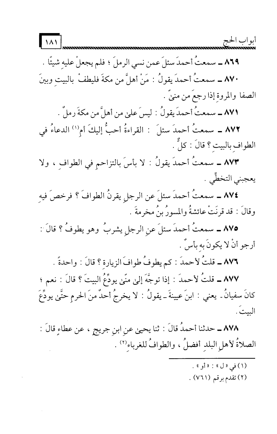 سَمِعْتُ أَحْمَدَ، يَقُولُ: «مَنْ أَهَلَّ مِنْ مَكَّةَ، فَلْيَطُفْ بِالْبَيْتِ وَبَيْنَ الصَّفَا وَالْمَرْوَةِ إِذَا رَجَعَ مِنْ مِنًى» .