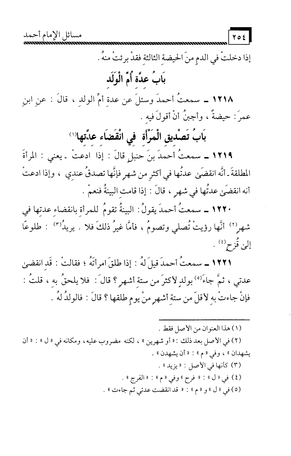 سَمِعْتُ أَحْمَدَ بْنَ حَنْبَلٍ، قَالَ " إِذَا ادَّعَتْ، يَعْنِي: الْمَرْأَةَ الْمُطَلَّقَةَ أَنَّهُ انْقَضَى عِدَّتُهَا فِي أَكْثَرِ مِنْ شَهْرٍ، فَإِنَّهَا تَصْدُقُ عِنْدِي، وَإِذَا ادَّعَتْ أَنَّهُ انْقَضَى عِدَّتُهَا فِي شَهْرٍ، قَالَ: إِذَا قَامَتِ الْبَيِّنَةُ فَنَعَمْ ".
