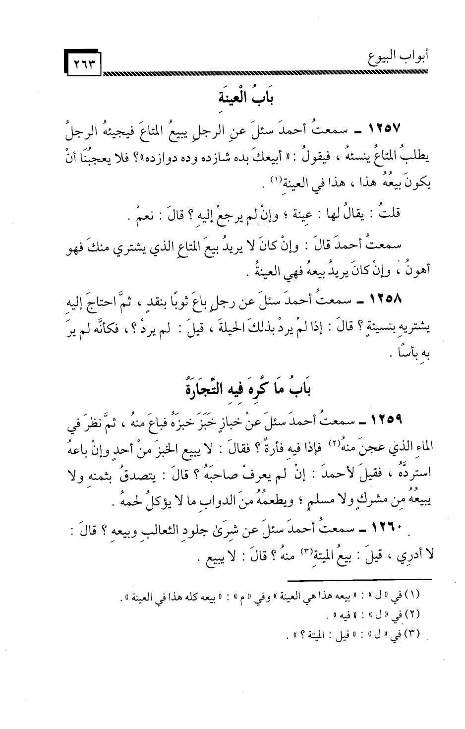 1257 - سَمِعْتُ أَحْمَدَ، " سُئِلَ عَنِ الرَّجُلِ يَبِيعُ الْمَتَاعَ فَيَجِيئُهُ الرَّجُلُ يَطْلُبُ الْمَتَاعَ يَنْسَؤُهُ، فَيَقُولُ: " أَبِيعُكَ بده شازده وده داوزده؟ فَلَا يُعْجِبُنَا أَنْ يَكُونَ بَيْعُهُ هَذَا، هَذَا فِي الْعِينَةِ، قُلْتُ: يُقَالُ لَهَا: عِينَةٌ، وَإِنْ لَمْ يَرْجِعْ إِلَيْهِ؟ قَالَ: نَعَمْ، سَمِعْتُ أَحْمَدَ، قَالَ: وَإِنْ كَانَ لَا يُرِيدُ بَيْعَ الْمَتَاعِ الَّذِي يَشْتَرِي مِنْكَ، فَهُوَ أَهْوَنُ، وَإِنْ كَانَ يُرِيدُ بَيْعَهُ فَهِيَ الْعِينَةُ «.