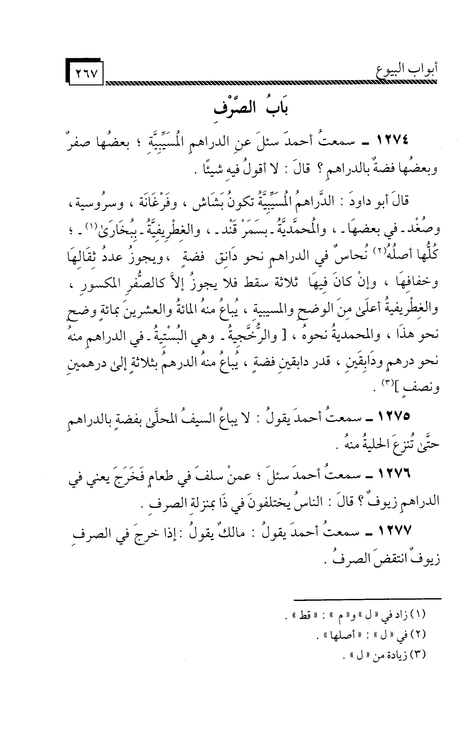 1275 - سَمِعْتُ أَحْمَدَ، يَقُولُ: «لَا يُبَاعُ السَّيْفُ الْمُحَلَّى بِفِضَّةٍ بِالدَّرَاهِمِ حَتَّى تُنْزَعَ الْحِلْيَةُ مِنْهُ» .