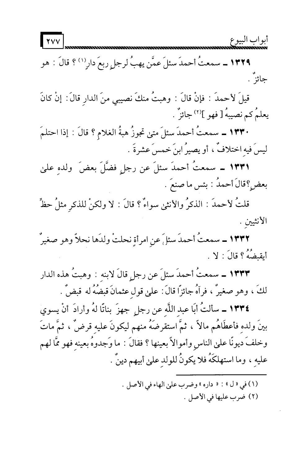 1329 - سَمِعْتُ أَحْمَدَ،» سُئِلَ عَمَّنْ يَهِبُ لِرَجُلٍ رُبْعَ دَارٍ؟ قَالَ: هُوَ جَائِزٌ ".
