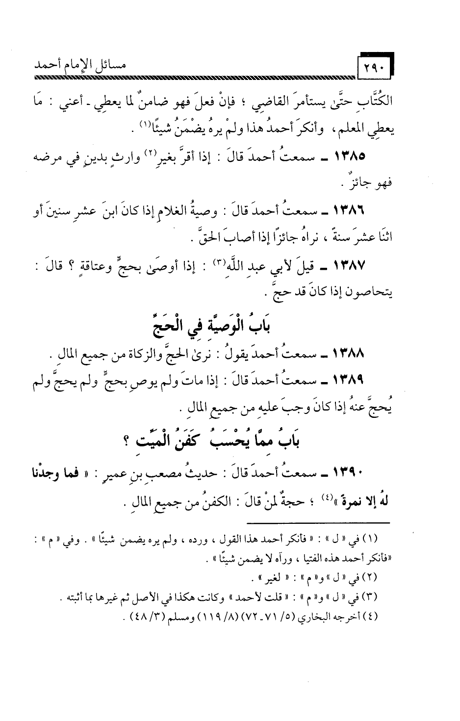 1387 - قِيلَ لِأَبِي عَبْدِ اللَّهِ: " إِذَا أَوْصَى بِحَجٍّ وَعَتَاقَةٍ؟ قَالَ: يتَحَاصُونَ إِذَا كَانَ قَدْ حَجَّ ".