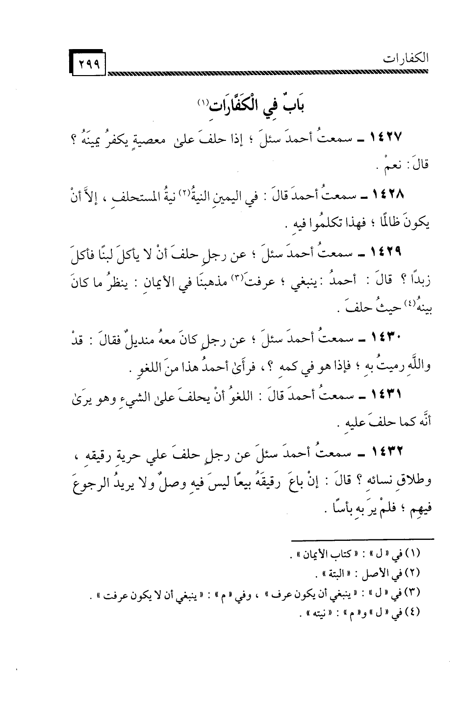 1430 - سَمِعْتُ أَحْمَدَ،» سُئِلَ عَنْ رَجُلٍ كَانَ مَعَهُ مِنْدِيلٌ، فَقَالَ: قَدْ وَاللَّهِ رَمَيْتُ بِهِ، فَإِذَا هُوَ فِي كُمِّهِ؟ فَرَأَى أَحْمَدُ هَذَا مِنَ اللَّغْوِ.