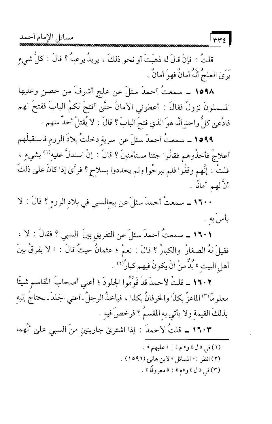 1600 - سَمِعْتُ أَحْمَدَ،» سُئِلَ عَنْ بَيْعِ السَّبْيِ فِي بِلَادِ الرُّومِ؟ قَالَ: لَا بَأْسَ بِهِ «.