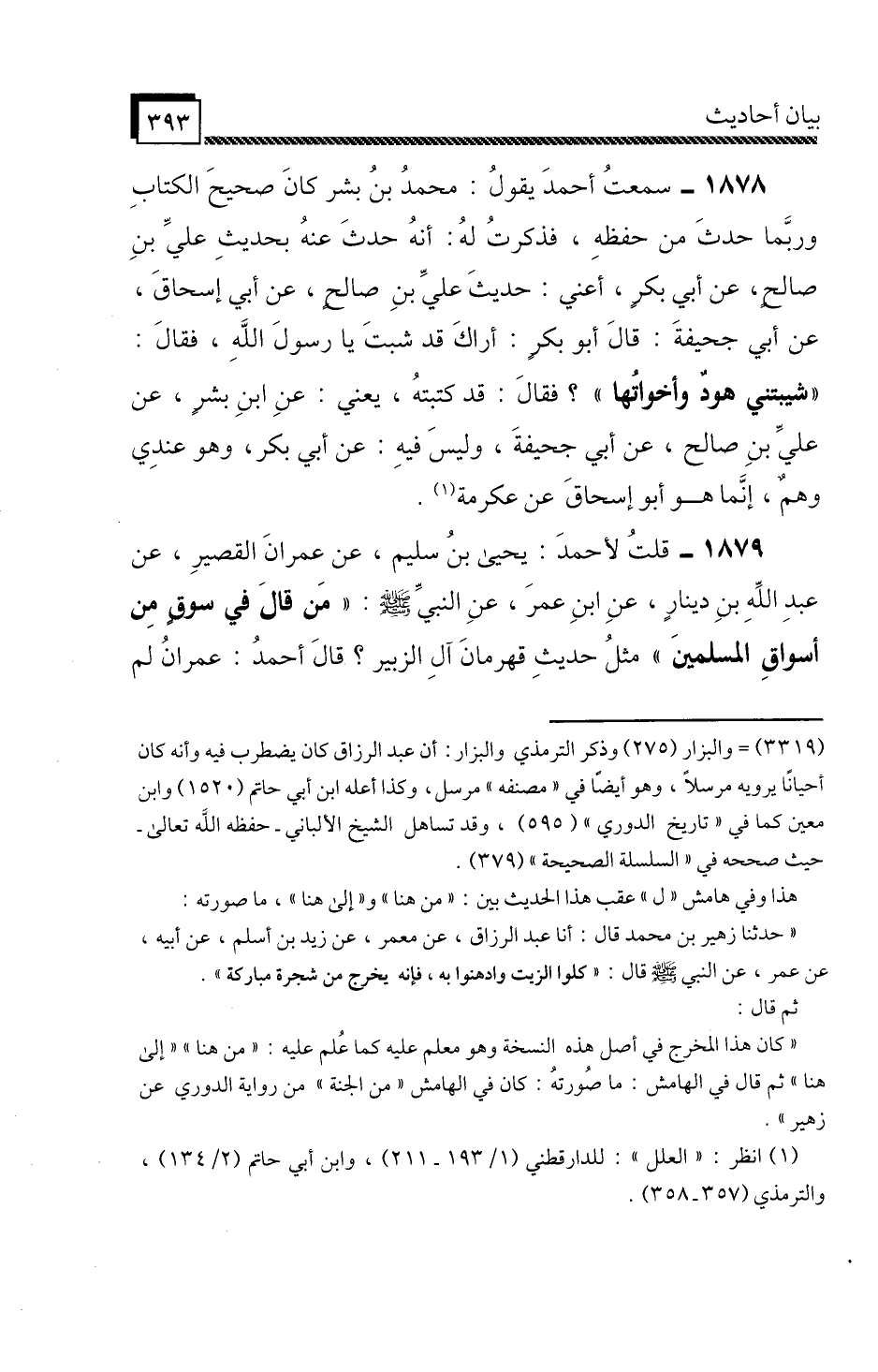 1879 - قُلْتُ لِأَحْمَدَ: يَحْيَى بْنُ سُلَيْمٍ عَنْ عِمْرَانَ الْقَصِيرِ، عَنْ عَبْدِ اللَّهِ بْنِ دِينَارٍ، عَنِ ابْنِ عُمَرَ، عَنِ النَّبِيِّ صَلَّى اللَّهُ عَلَيْهِ وَسَلَّمَ: «مَنْ قَالَ فِي سُوقٍ مِنْ أَسْوَاقِ الْمُسْلِمِينَ» مِثْلُ حَدِيثِ قَهْرَمَانَ آلِ الزُّبَيْرِ؟ قَالَ أَحْمَدُ: عِمْرَانُ لَمْ