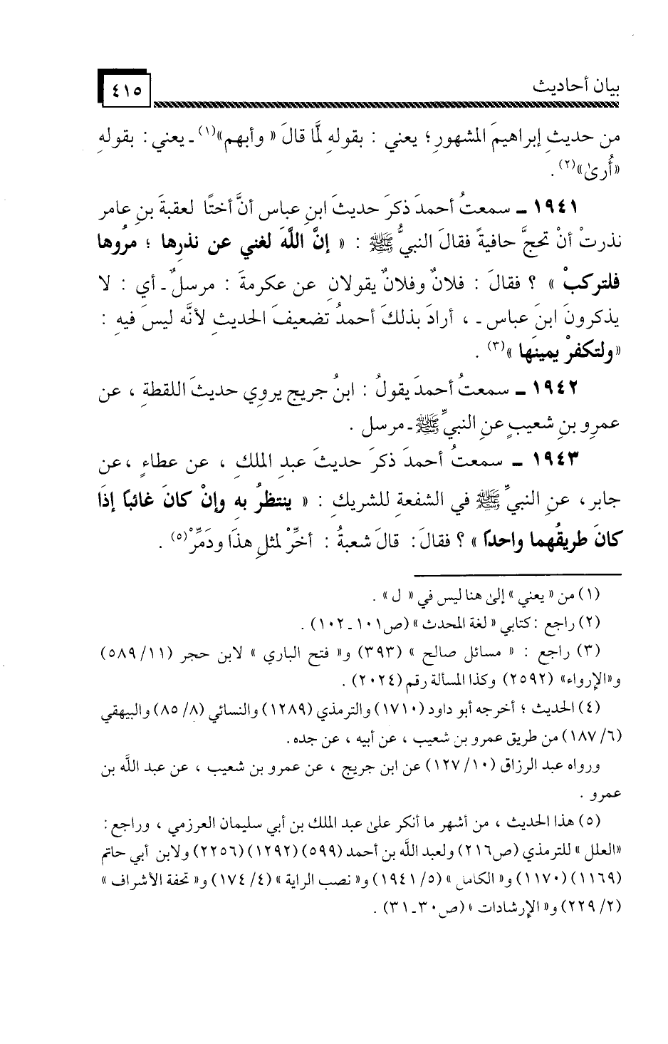 1941 - سَمِعْتُ أَحْمَدَ، ذَكَرَ حَدِيثَ ابْنِ عَبَّاسٍ أَنَّ أُخْتًا لِعُقْبَةَ بْنِ عَامِرٍ نَذَرَتْ أَنْ تَحُجَّ حَافِيَةً، فَقَالَ النَّبِيُّ صَلَّى اللَّهُ عَلَيْهِ وَسَلَّمَ: «إِنَّ اللَّهَ لَغَنِيٌّ عَنْ نَذْرِهَا، مُرُوهَا فَلْتَرْكَبْ» .