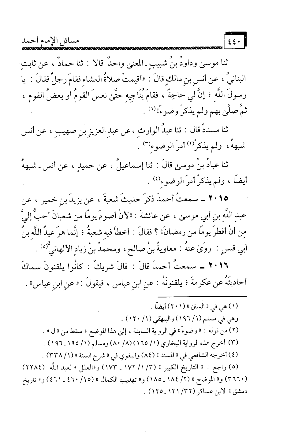 2015 - سَمِعْتُ أَحْمَدَ، ذَكَرَ حَدِيثَ شُعْبَةَ، عَنْ يَزِيدَ بْنِ خُمَيْرٍ، عَنْ عَبْدِ اللَّهِ بْنِ أَبِي مُوسَى، عَنْ عَائِشَةَ «لَأَنْ أَصُومَ يَوْمًا مِنْ شَعْبَانَ أَحَبُّ إِلَيَّ مِنْ أَنْ أُفْطِرَ يَوْمًا مِنْ رَمَضَانَ» , فَقَالَ: أَخْطَأَ فِيهِ شُعْبَةُ، إِنَّمَا هُوَ عَبْدُ اللَّهِ بْنُ أَبِي قَيْسٍ، رَوَى عَنْهُ: مُعَاوِيَةُ بْنُ صَالِحٍ، وَمُحَمَّدُ بْنُ زِيَادٍ الْأَلْهَانِيُّ