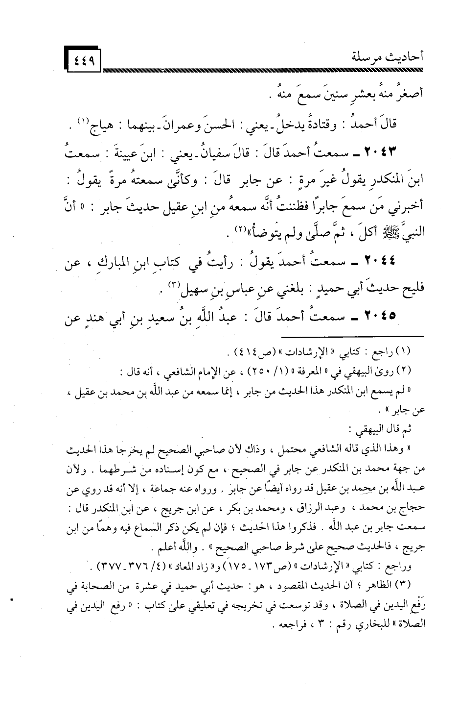 2044 - سَمِعْتُ أَحْمَدَ، يَقُولُ: رَأَيْتُ فِي كِتَابِ ابْنِ الْمُبَارَكِ، عَنْ فُلَيْحٍ حَدِيثَ أَبِي حُمَيْدٍ: بَلَغَنِي عَنِ عَبَّاسِ بْنِ سُهَيْلٍ.