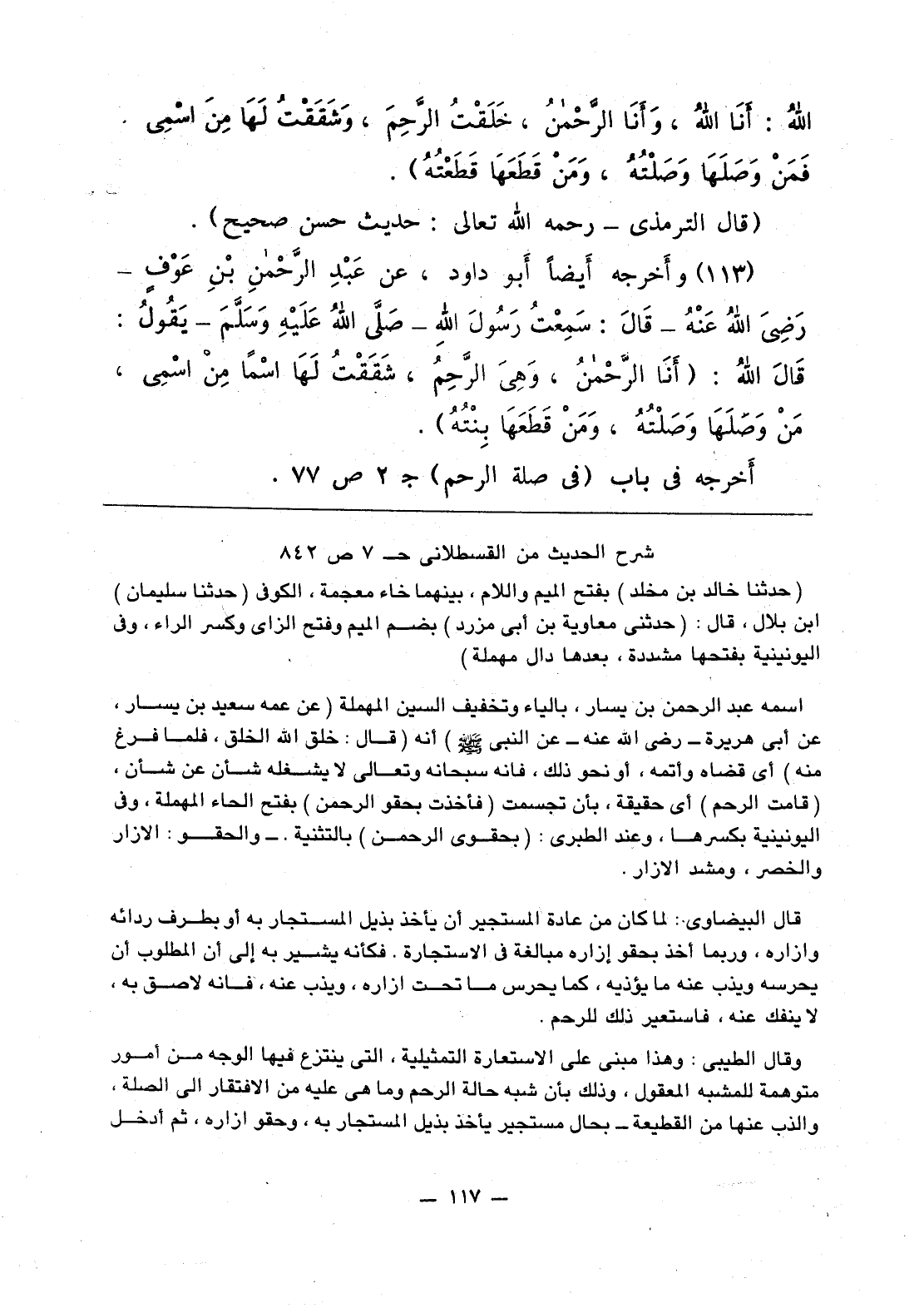 114 - وأخرجه أيضا أبو داود، عن عَبْدِ الرَّحمنِ بْنِ عَوْف - رَضِيَ اللَّهُ عَنْهُ - قَالَ: سَمِعْتُ رَسُولَ اللَّهِ يَقُولُ: «قَالَ اللَّهُ: أَنَا الرَّحْمنُ، وَهِيَ الرَّحِمُ، شَقَقْتُ لَهَا اسْما مِنْ اسْمِي، مَنْ وَصَلَهَا وَصَلْتُهُ، وَمَنْ قَطَعَهَا بِنْتُهُ».
