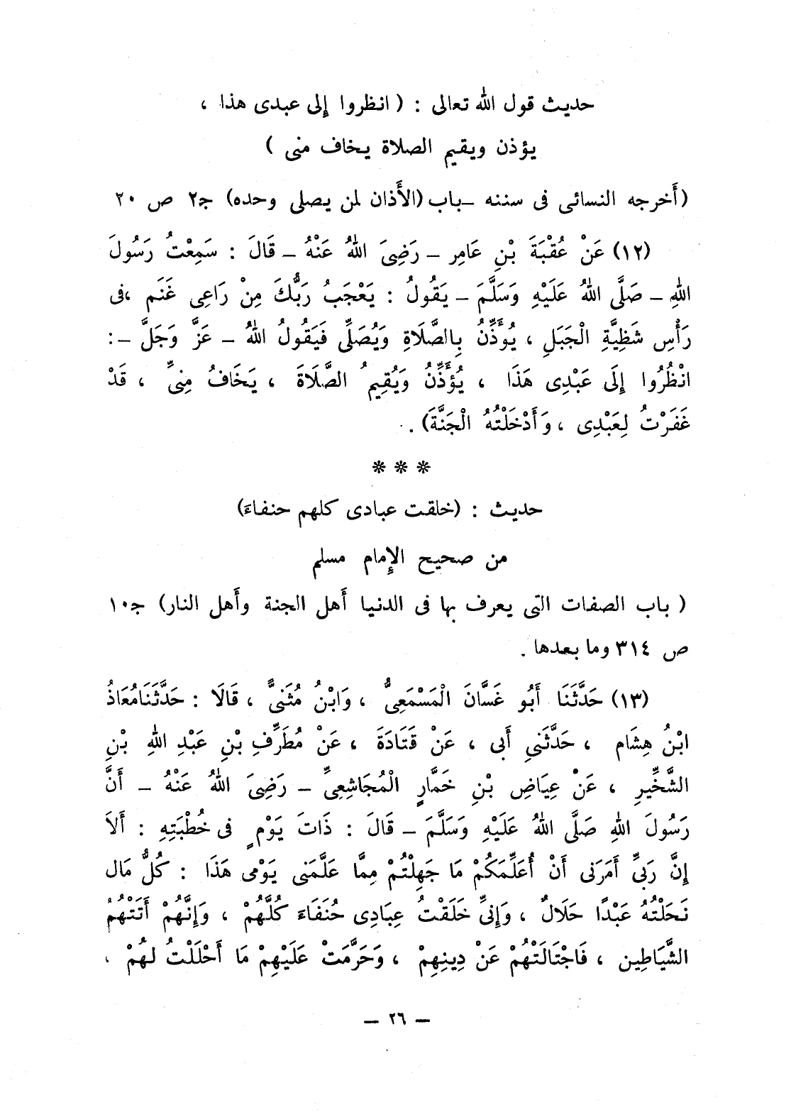 حديث: (خلقت عبادي كلهم حنفاءَ) من صحيح الإمام مسلم