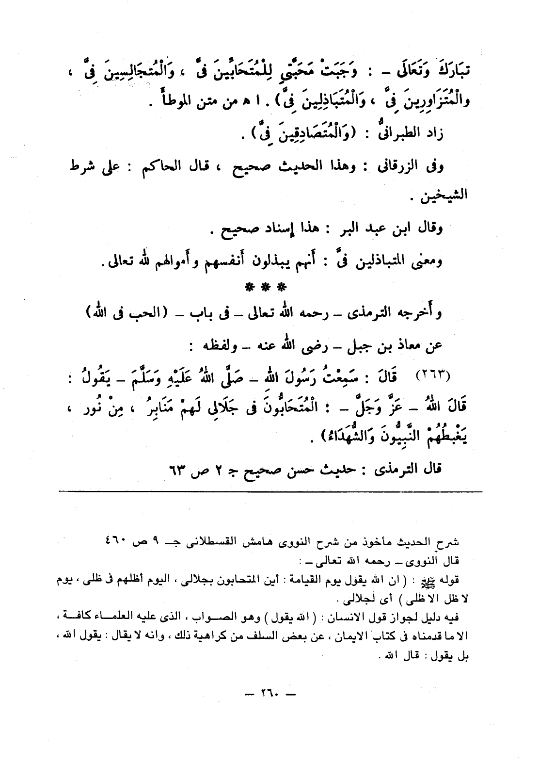 - تبَارَكَ وَتَعَالَى -: وَجَبَتْ مَحَبَّتي لِلْمُتَحَابِّينَ فيَّ، وَالْمُتَجَالِسِينَ فِيَّ، والْمُتَزَاوِرِينَ فِيَّ، وَالْمُتَبَاذِلِينَ فِيَّ. اه - من متن الموطأ.