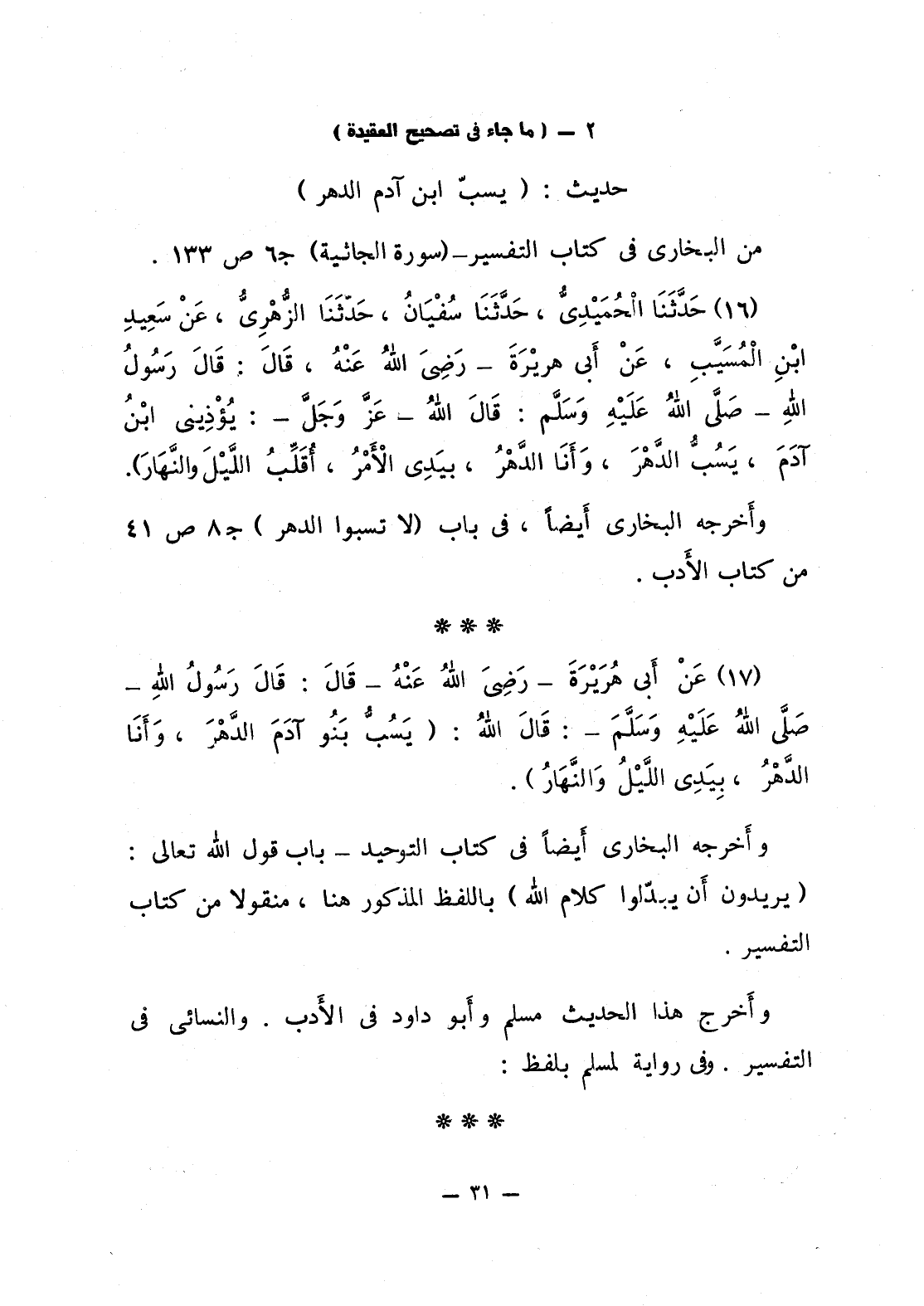 2 - (ما جاء في تصحيح العقيدة) حديث: (يسبّ ابن آدم الدهر)