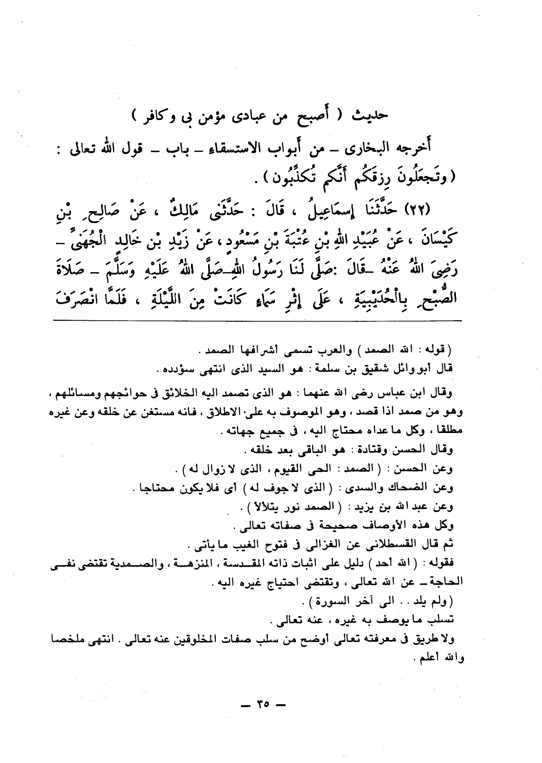 حديث (أصبح من عبادي مؤمن بي وكافر)
