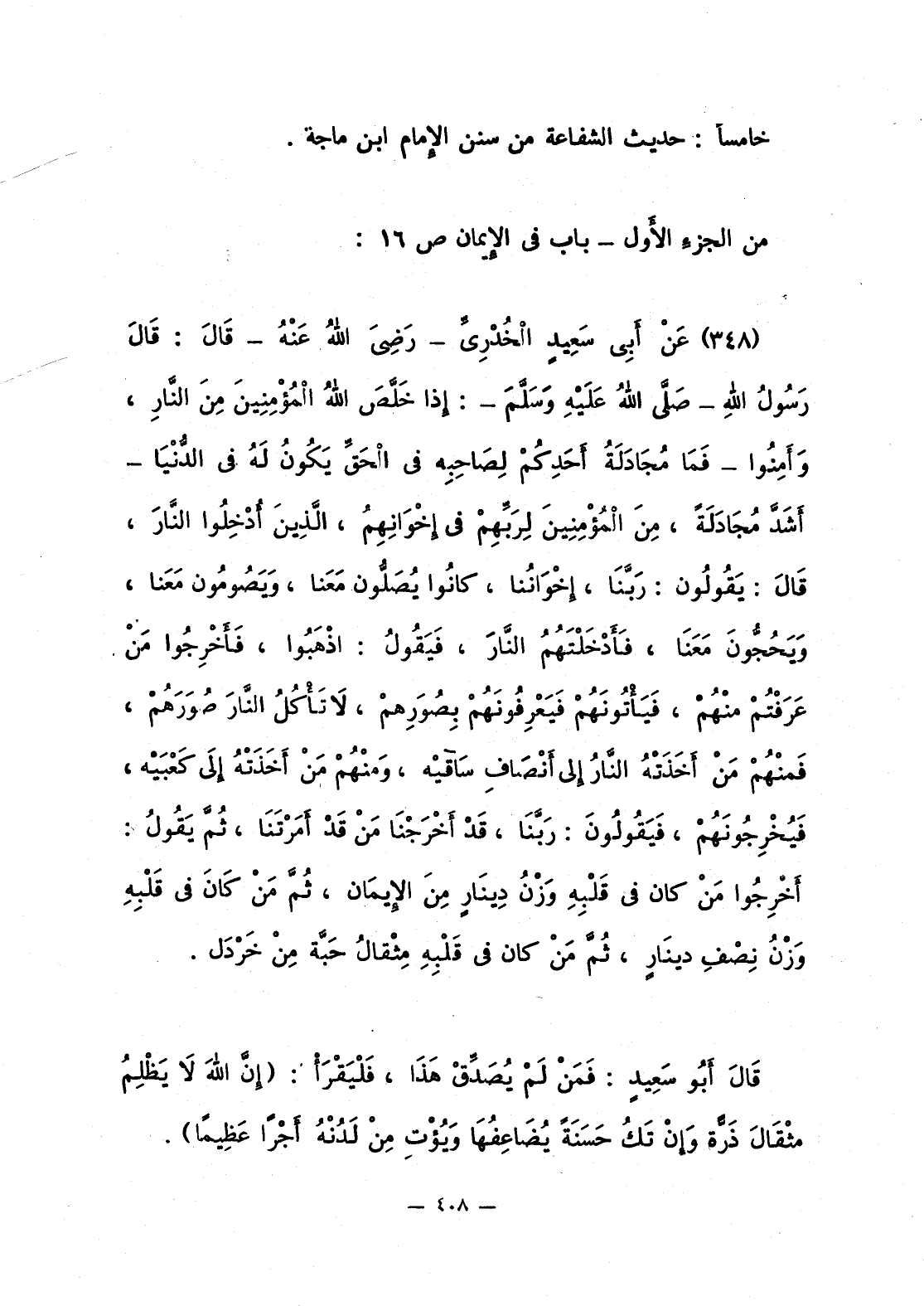 خامسا: حديث الشفاعة من سنن الإمام ابن ماجة