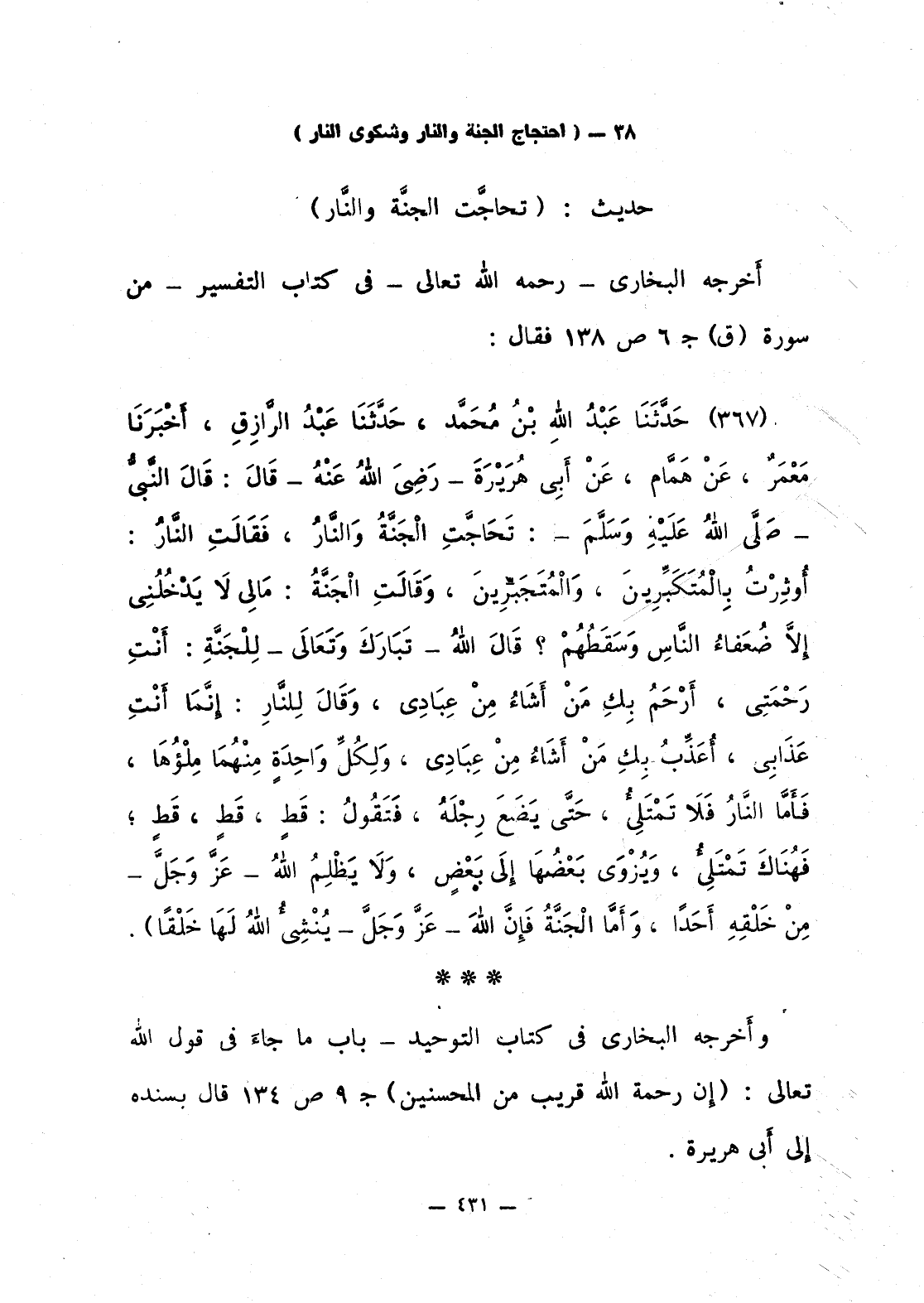 38 - (احتجاج الجنة والنار وشكوى النار)