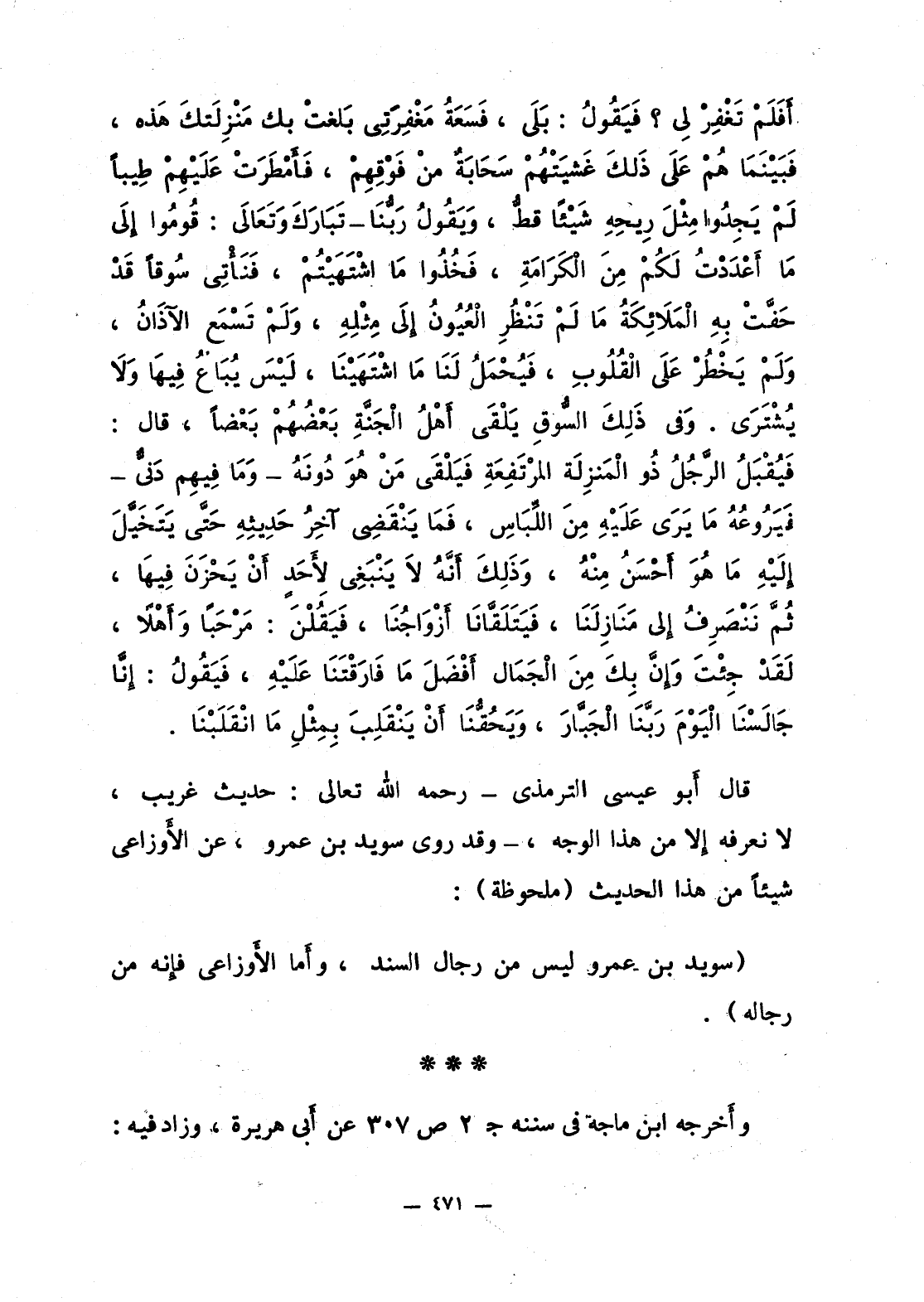 قال أبو عيسى الترمذي - رحمه الله تعالى: حديث غريب، لا نعرفه إلا من هذا الوجه، - وقد روى سويد بن عمرو، عن الأوزاعي شيئا من هذا الحديث