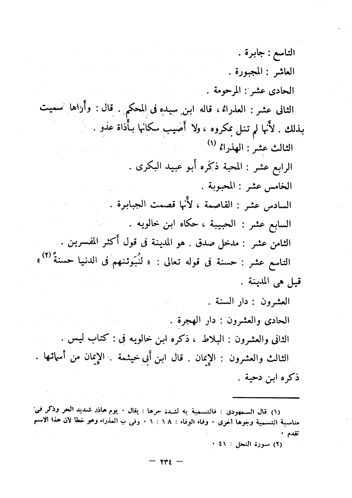التاسع عشر: حسنة في قوله تعالى: ((لنُبَوئنهم في الدنيا حسنةً)) قيل هي المدينة.