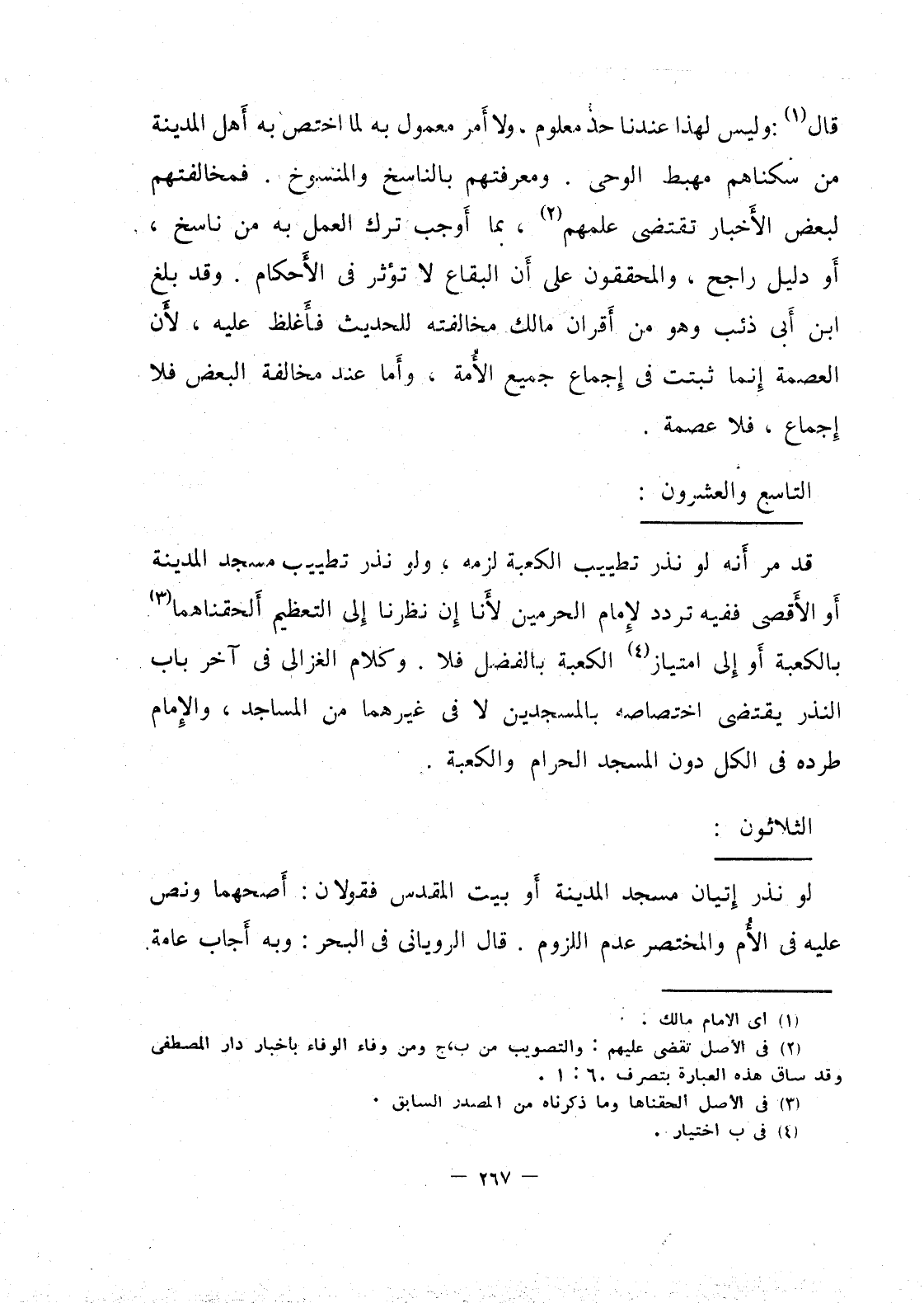 لو نذر إتيان مسجد المدينة أو بيت المقدس فقولان: أَصحهما ونص عليه في الأُم والمختصر عند اللزوم. قال الروياني في البحر: وبه أجاب عامة.